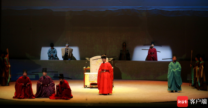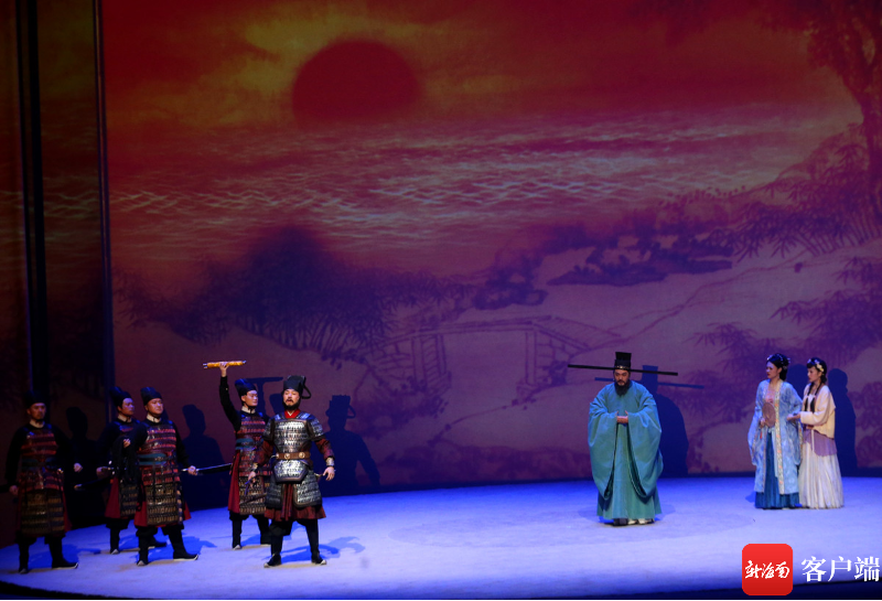 原創(chuàng)話劇《蘇東坡》在??跒逞菟囍行木噬涎?。 記者 陳望 攝