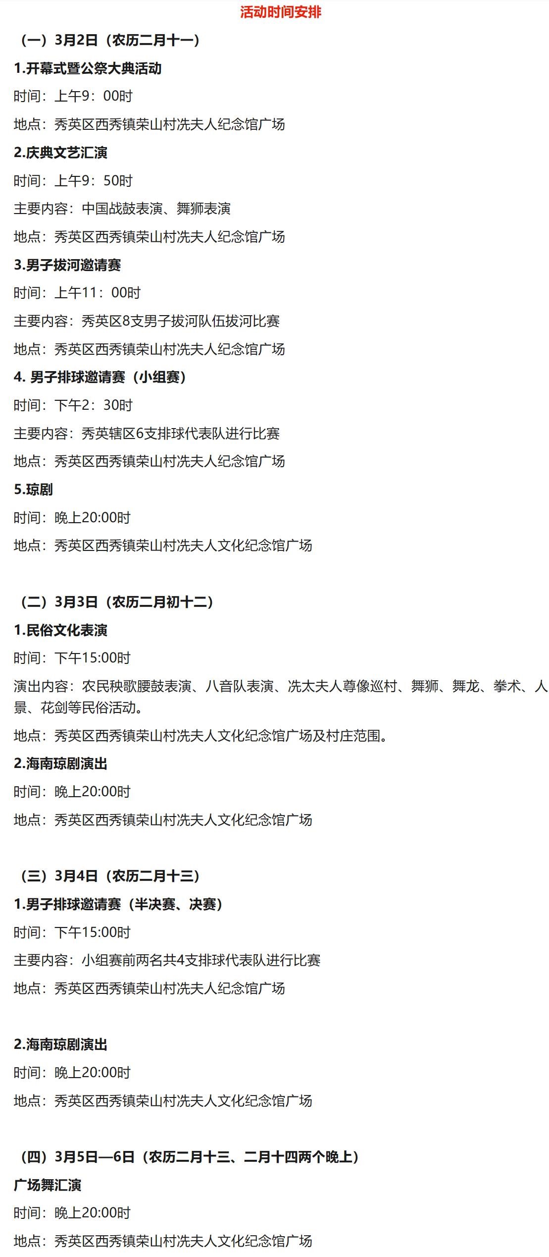 ?圖為2023年冼夫人文化節活動安排(來源:秀英發布)