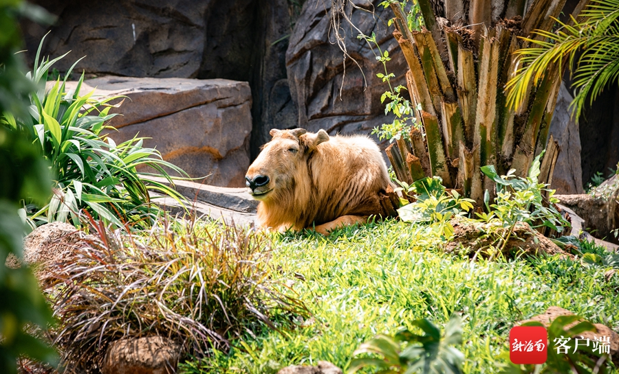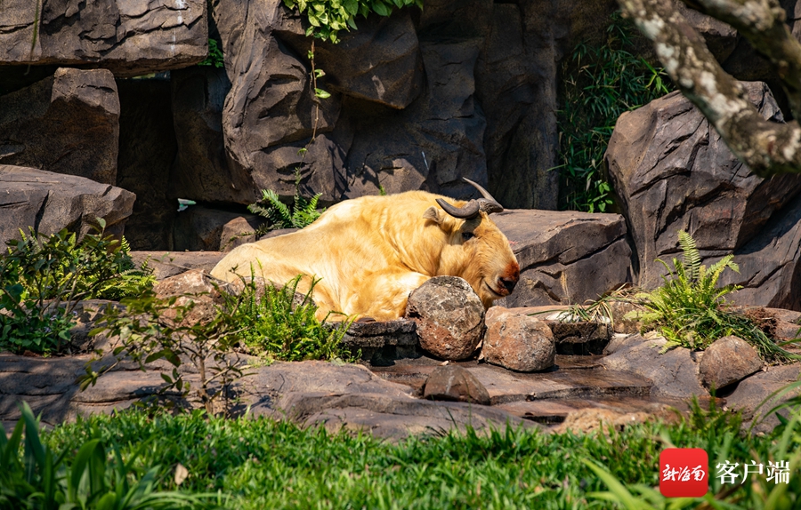據悉,從杭州到海南,海南熱帶野生動植物園為金毛羚牛的適應下了不少功夫,特別是“復刻”野外生活環境。吳之昊說,考慮到金毛羚牛在秦嶺山脈自然生存環境中喜歡攀爬,我們在展區“造”了一座假山,供它們“健身”,并種植了一些海南特色植物和可食用的嫩草,營造舒適的居住環境。