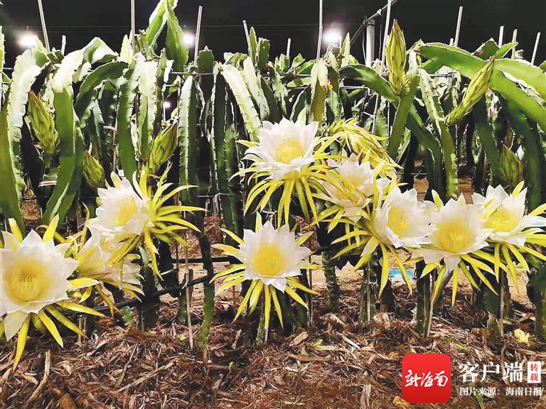 每當夜幕降臨,位于三亞市育才生態(tài)區(qū)馬腳村的水果島火龍果基地,便多了一股唯美浪漫的氛圍。數(shù)萬盞促進火龍果光合作用的補光燈在黑夜中亮起,仿佛一片群星閃耀的星空,蔚為壯觀。