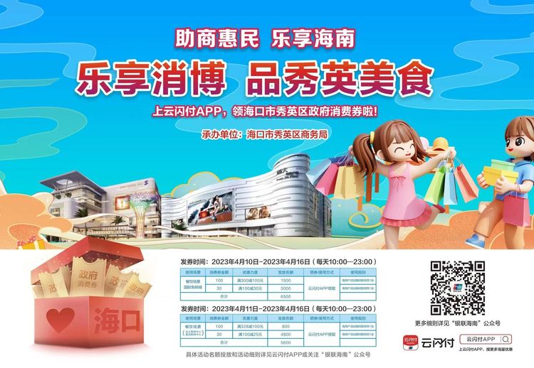 新海南客戶端、南海網、南國都市報4月10日消息(記者 王康景)第三屆中國國際消費品博覽會期間,海口市秀英區將舉辦“樂享消博?品秀英美食”活動,并在4月10日至16日(每天10:00—23:00)發放政府消費券50萬元,助力市民游客在秀英樂享盛會。