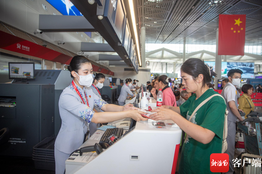 海南航空地面服務人員為旅客提供服務。記者 劉洋 攝
