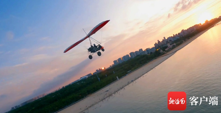 ?乘坐動力三角翼,高空看海口。海口市旅文局供圖