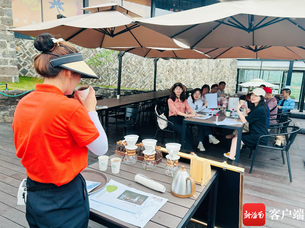 咖啡主題沙龍工作人員張麗娟表示,她會從世界咖啡文化至海南咖啡種植特點,向游客們介紹咖啡品種、咖啡品鑒技巧等,同時帶領游客學習咖啡沙畫等創意手工。而觀山茶藝雅集則有工作人員向游客講解中國茶文化,品嘗儋州本土的九品蓮花茶和來自白沙隕石坑的有機綠茶等。