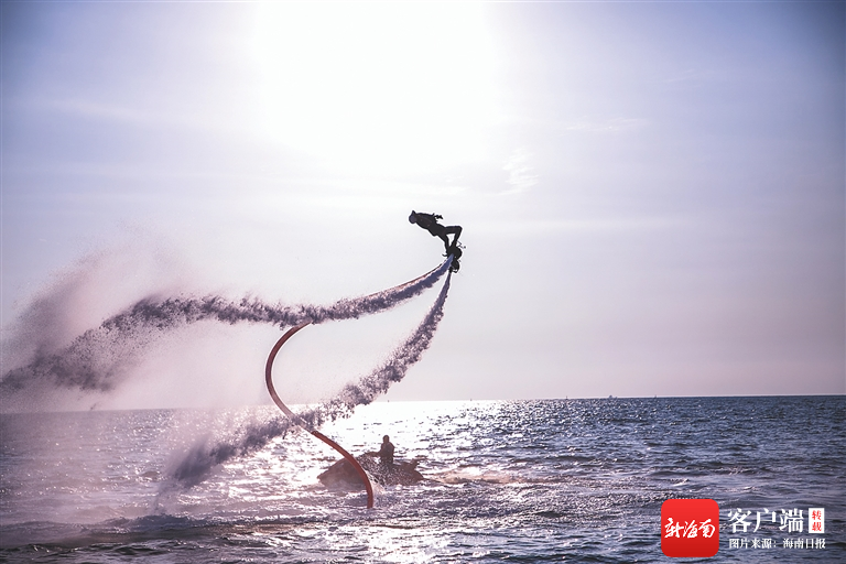 在東方市魚鱗洲風景區,游客體驗水上項目。趙茜 攝