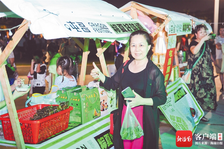 ??谑忻裨诨顒蝇F場購買屯昌黑豬肉粽并點贊。圖片由活動主辦方提供