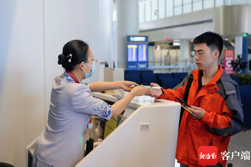 工作人員為旅客辦理值機(jī)。海口美蘭國際機(jī)場供圖